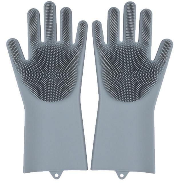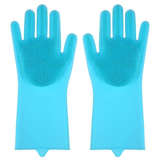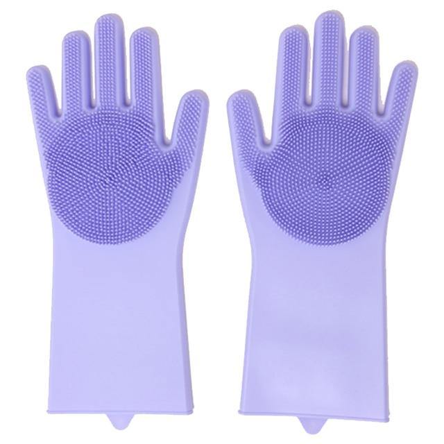 Our convenient silicone dishwashing gloves feature built-in dish scrubbing bristles right in the palms of your hands. The innovative design of these gloves makes them super easy to use and clean.